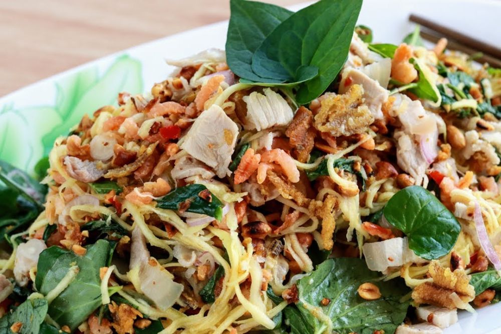 A refreshing salad made with shredded green mango, dried fish, peanuts, and chili. Tangy, spicy, and salty - a perfect side dish or light meal on a hot day.
